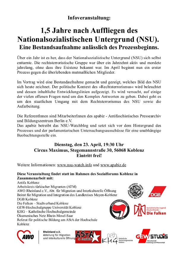 Flyer Infoveranstaltung Thema Nationalsozialistischer Untergrund 600x